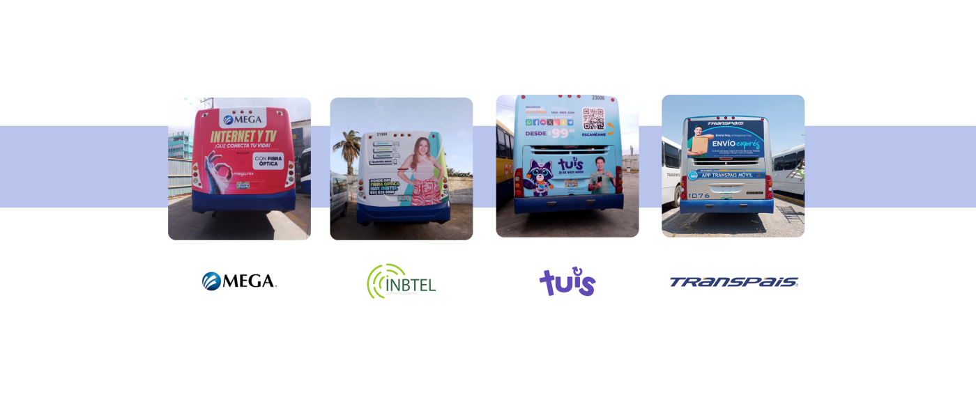 Somos una empresa de Grupo Transpais, dedicados a comercializar espacios para publicidad rotulada en autobuses de las diferentes empresas de transporte de Grupo Transpais como Urban de transporte urbano en Tampico y área conurbada y como MobiliTI con servicio de transporte de personal en Tamaulipas y Nuevo León. Aseguramos que tu campaña y tu marca recorran las principales avenidas de la ciudad en horas de alto tráfico para que todos te vean.